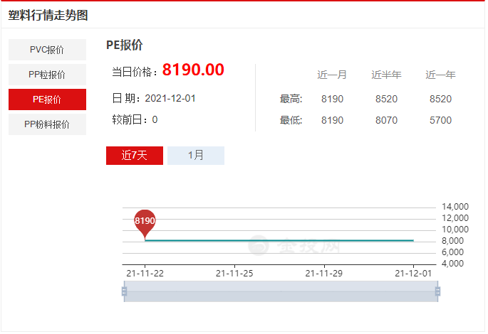 12月1日PP現(xiàn)貨價格偏弱整理,幅度在50-100元/噸,預(yù)計(jì)下周一國內(nèi)聚丙烯市場弱勢,以華東為例,預(yù)計(jì)拉絲主流價格在8200-8550元/噸。12月1日國內(nèi)PVC市場價格下跌,預(yù)計(jì)下周PVC市場價格偏弱震蕩為主,下周華東SG-5價格預(yù)計(jì)或?qū)?900-9300元/噸區(qū)間震蕩。